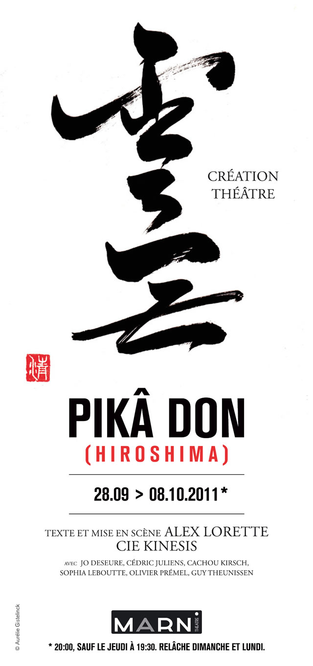 Quelques mois après la catastrophe de Fukushima au Japon, Alex Lorette, auteur dramatique, metteur en scène et comédien belge livre sur la scène du Marni (Ixelles) à la fin septembre, Pikâ Don, Hiroshima. La pièce est une succession de tableaux mettant en scène des Japonais, Européens et Américains avant, après et longtemps après le lâchage de la bombe A sur Hiroshima. Rencontre avec son auteur.